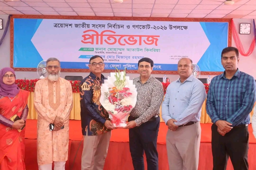 মকবুল হোসেন, ময়মনসিংহ জেলা প্রতিনিধি : ময়মনসিংহ জেলা পুলিশের আয়োজনে ময়মনসিংহ জেলার পুলিশ লাইন্সের শহীদ বীর মুক্তিযোদ্ধা পুলিশ সুপার মুন্সী কবির উদ্দিন আহমেদ মাল্টিপারপাস শেড (কল্যাণ শেড) এ জেলা পুলিশের পুলিশ সুপার মোঃ মিজানুর রহমান সভাপতিত্বে ত্রয়োদশ জাতীয় সংসদ নির্বাচন ও গণভোট-২০২৬ উপলক্ষে আজ ১৪ ফেব্রুয়ারি শনিবার দুপুর দুইটা ফোর্সের প্রীতিভোজের আয়োজন করা হয়।