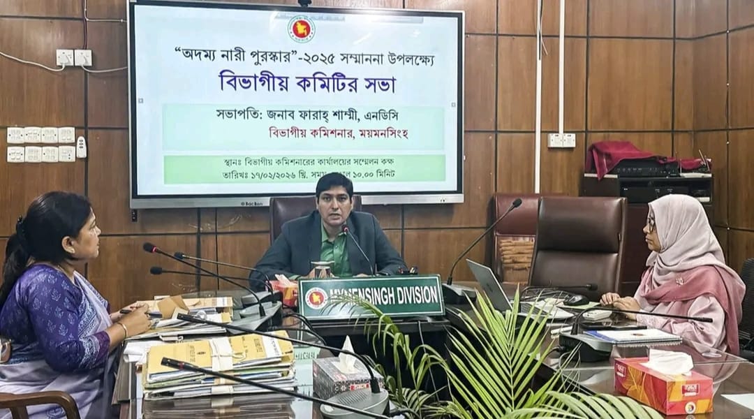 মকবুল হোসেন, ময়মনসিংহ জেলা প্রতিনিধি : অদম্য নারী পুরস্কার-২০২৫ সম্মাননা উপলক্ষ্যে বিভাগীয় কমিটির সভা আজ ১৭ ফেব্রুয়ারি মঙ্গলবার ময়মনসিংহ বিভাগীয় কমিশনার কার্যালয়ের সম্মেলন কক্ষে অনুষ্ঠিত হয়।