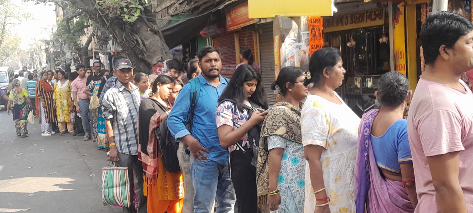 অন্যদিকে ভিড় চোখে পড়ার মতো লক্ষ্য করা যায় ভক্তদের, ভোগ খাওয়ার জন্য লাইনের দাঁড়িয়ে শয়ে শয়ে রক্ত থেকে শুরু করে সাধারণ মানুষ। কোনরকম ত্রুটি রাখেননি সবার জন্য, ১৫ হাজার লোকের আয়োজন করেছিলেন রতন বাবু,