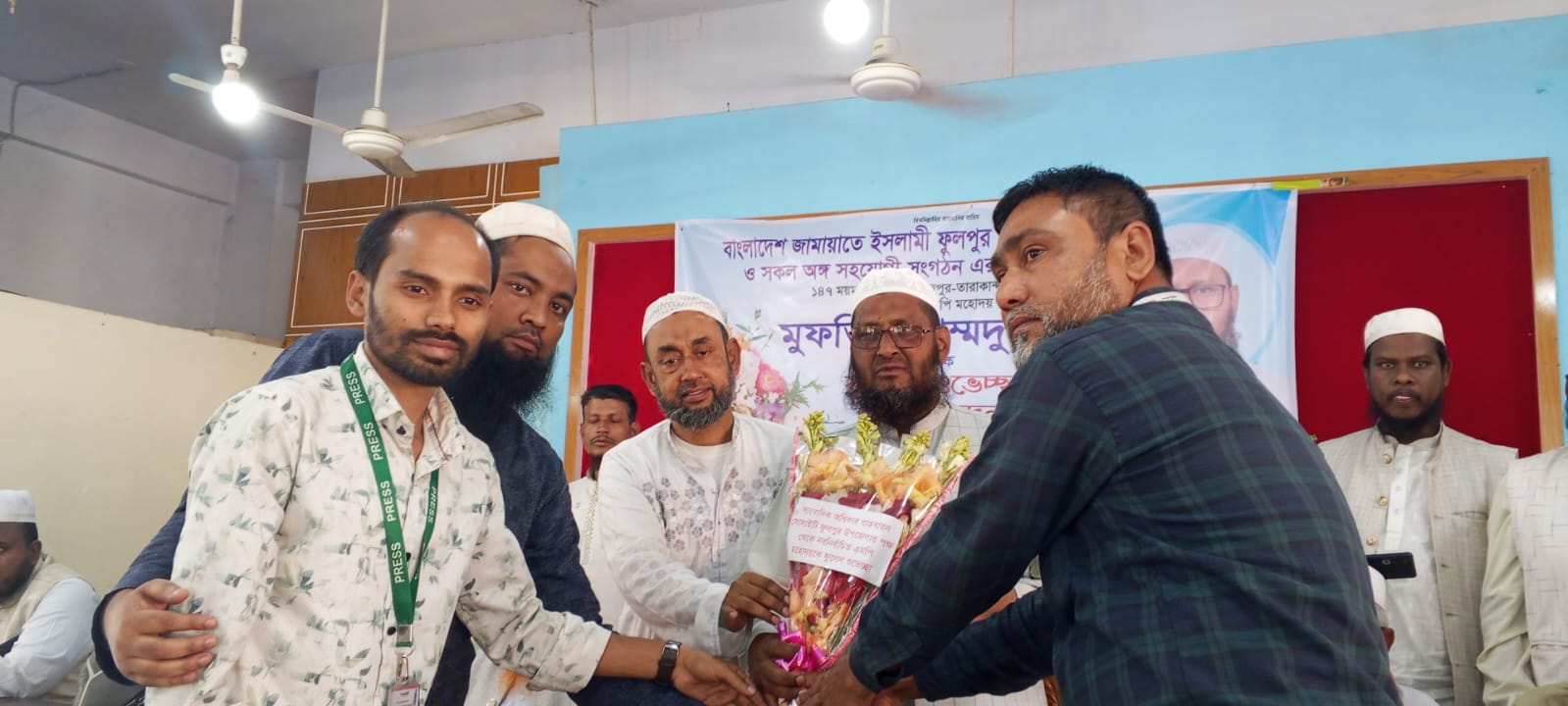 ফুলপুরে নবনির্বাচিত এমপি মুফতী মুহাম্মাদ উল্লাহকে সাংবাদিকদের ফুলেল শুভেচ্ছা