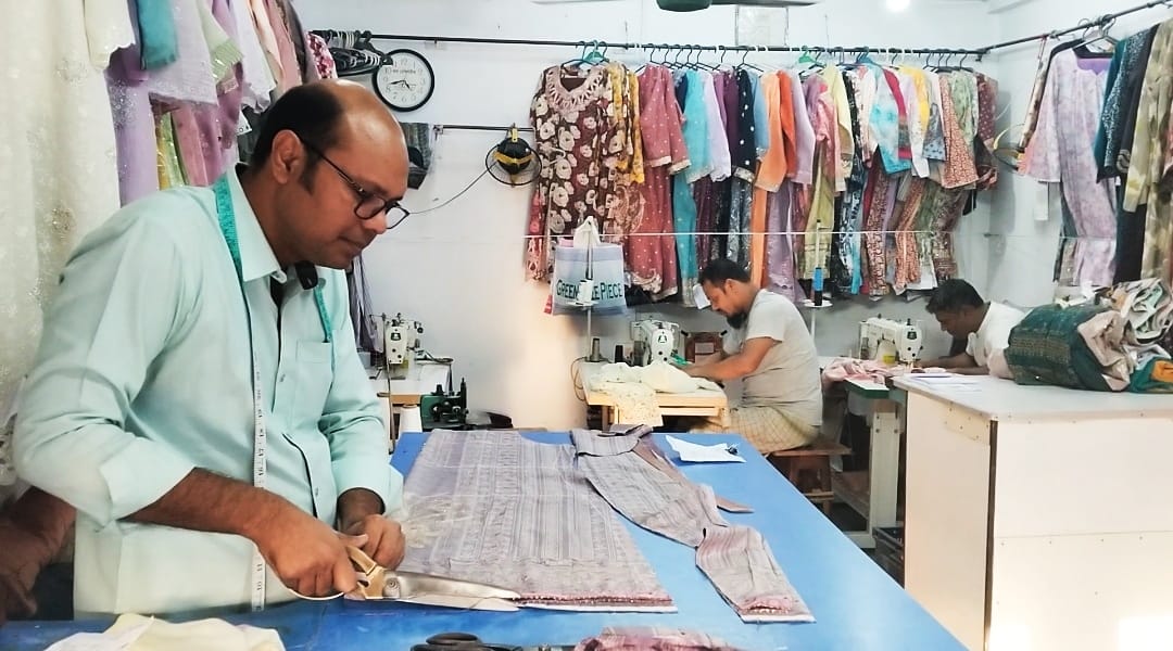 চাঁপাইনবাবগঞ্জে পবিত্র ঈদুল ফিতর ঈদ সামনে রেখে ব্যস্ত দর্জিরা