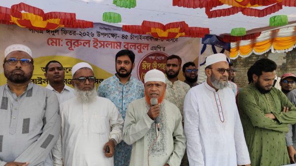 মাহিদুল ইসলাম ফরহাদ ,চাঁপাইনবাবগঞ্জ জেলা প্রতিনিধি :পবিত্র ঈদুল ফিতর-২০২৬ উপলক্ষে চাঁপাইনবাবগঞ্জ-৩ আসনের সংসদ সদস্য মোঃ নূরুল ইসলাম বুলবুলের পক্ষ থেকে আজ শুক্রবার। অসহায় ও দুস্থ মানুষের মাঝে ঈদ উপহার ও নগদ অর্থ বিতরণ করা হয়েছে। অনুষ্ঠানে সভাপতিত্ব করেন চাঁপাইনবাবগঞ্জ জেলা জামায়াতে ইসলামীর আমীর মাওলানা আবু গিফারী। প্রধান অতিথি হিসেবে উপস্থিত থেকে ঈদ উপহার ও নগদ অর্থ বিতরণ কার্যক্রমে অংশ নেন সংসদ সদস্য মোঃ নূরুল ইসলাম বুলবুল। এসময় তিনি বলেন, ঈদের আনন্দ সকলের মাঝে ভাগাভাগি করে নিতে সমাজের বিত্তবানদের এগিয়ে আসা উচিত। অসহায় মানুষের মুখে হাসি ফোটাতে এ ধরনের উদ্যোগ গুরুত্বপূর্ণ ভূমিকা রাখে। অনুষ্ঠানে বিশেষ অতিথি হিসেবে উপস্থিত ছিলেন জামায়াতে ইসলামীর কেন্দ্রীয় কর্মপরিষদের সদস্য ও সাবেক পৌরসভার মেয়র মোঃ নজরুল ইসলাম, চাঁপাইনবাবগঞ্জ সদর উপজেলার সাবেক চেয়ারম্যান মোঃ মোখলেশুর রহমান। এছাড়াও উপস্থিত ছিলেন জামায়াতের পৌর আমীর হাফেজ গোলাম রাব্বানী, পৌর জামায়াতের নায়েবে আমীর অ্যাডভোকেট শফিক এনাতুল্লাহ, পৌর জামায়াতের সেক্রেটারি তহরুল ইসলাম সোহেল, পৌর যুব জামায়াতের সভাপতি আবু তালেব এবং পৌরসভার ৬ নম্বর ওয়ার্ডের সভাপতি আব্দুল খালিদসহ অন্যান্য নেতৃবৃন্দ। উল্লেখ্য,প্রধানমন্ত্রীর ত্রাত তহবিল থেকে বরাদ্দকৃত ৭০০ পিছ শাড়ী চাঁপাইনবাবগঞ্জ সদর এলাকার সুবিধাবঞ্চিত মা-বোনদের মাঝে বিতরণ করেন ও প্রধানমন্ত্রীর দেওয়া ১০ লক্ষ টাকা ১০০০ জন দুস্থ অসহায় মানুষের ১০০০ টাকা নগদ অর্থ প্রদান করেন চাঁপাইনবাবগঞ্জ-৩ আসনের এমপি নূরুল ইসলাম বুলবুল। সদর উপজেলার ১৪ টি ইউনিয়ন ও পৌরসভার ১৫টি ওয়ার্ডের দরিদ্র, দুস্থ ও অসহায় মানুষের মাঝে এই ঈদ উপহার ও নগদ অর্থ বিতরণ করা হয়। এই মানবিক কার্যক্রমের মাধ্যমে ঈদ আনন্দ ছড়িয়ে দিতে গুরুত্বপূর্ণ ভূমিকা রাখছেন এমপি মোঃ নূরুল ইসলাম বুলবুল।