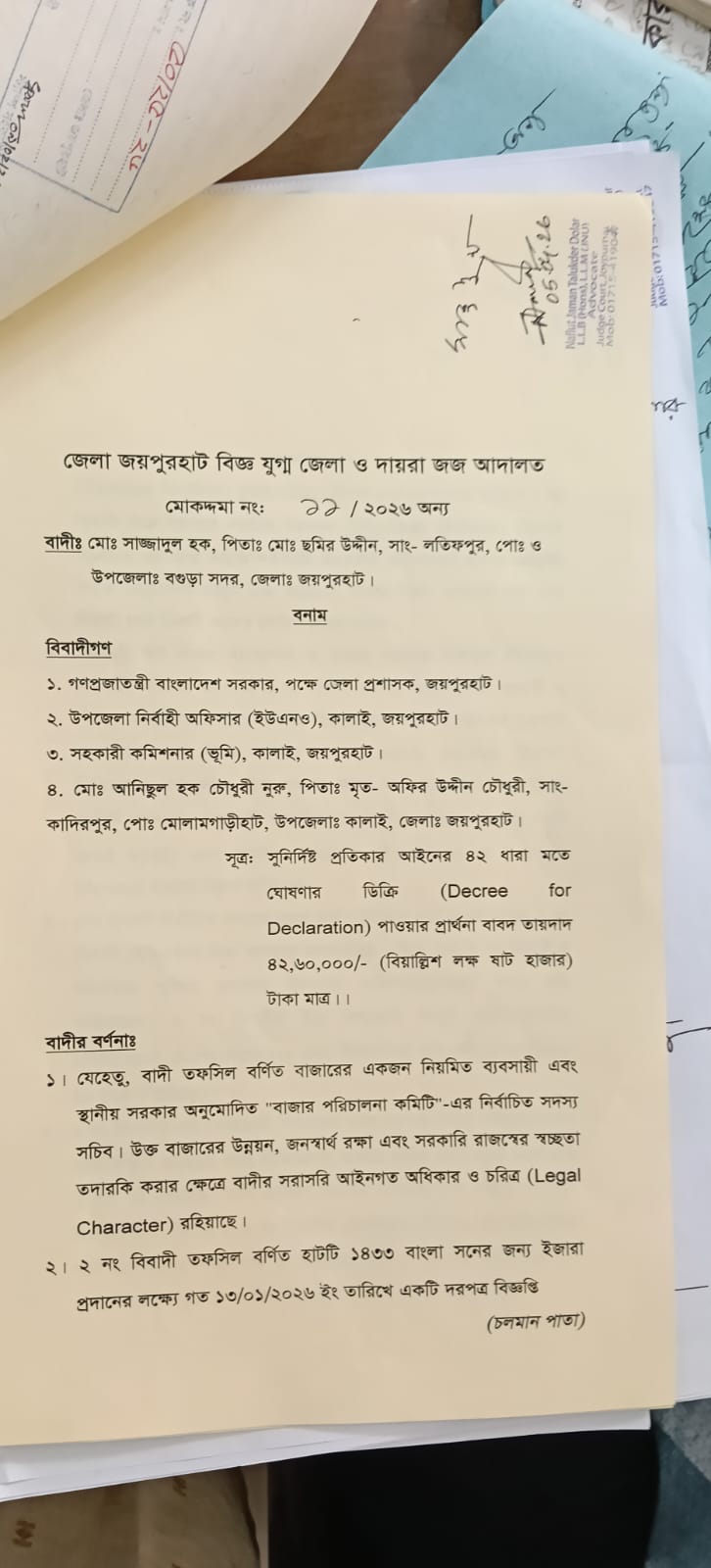 বাদী পক্ষের আইনজীবী নাফিউজ্জামান তালুকদার ডলার বলেন, সাজ্জাদুল হক বাদী হয়ে জয়পুরহাট যুগ্ন জেলেও দায়রা জোজ আদালতে মামলা করেছেন, আদালত পরবর্তী শুনানের জন্য মামলাটি গ্রহণ করেছেন।