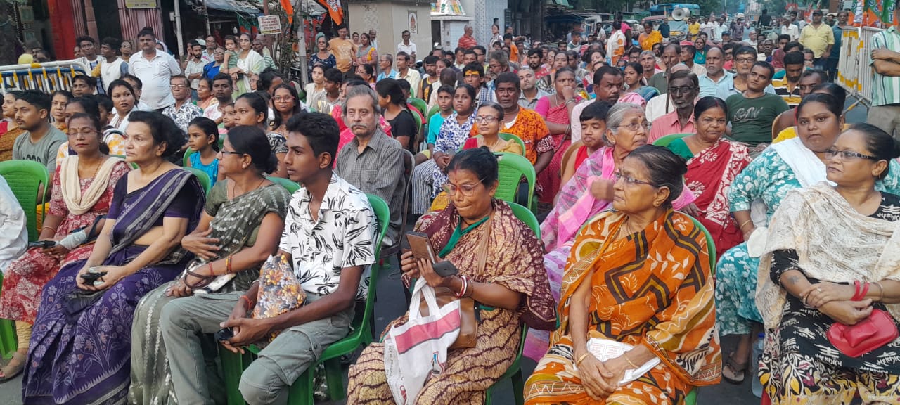 রিপোর্টার, সমরেশ রায় ও শম্পা দাস, কলকাতা, পশ্চিমবঙ্গ: ১৮ ই এপ্রিল শনিবার, ঠিক বিকেল পাঁচটায়, আহেরীটলা দোলনা পার্কের সংযোগস্থলে, শ্যামপুকুর বিধানসভা কেন্দ্রের ভারতীয় জনতা পার্টির প্রার্থী পূর্ণিমা চক্রবর্তীর সমর্থনে, শ্যামপুকুরের ভূমিপুত্র সুপারস্টার মিঠুন চক্রবর্তীর উপস্থিতিতে, ভোটকে সামনে রেখে এক বিশাল জনসভা। এই জনসভার মূল উদ্দেশ্য, ২০২৬ হবে জনগণের শেষ রাই, আর জনগণই পাল্টাবে দুর্নীতিকে দূর করে নতুন সরকার।