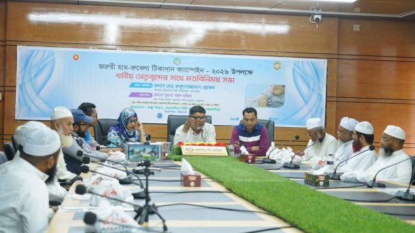 ময়মনসিংহ সিটি কর্পোরেশন ধর্মীয় নেতৃবৃন্দের সাথে জরুরী হাম-রুবেলা টিকাদান ক্যাম্পেইন-২০২৬ এর মতবিনিময় সভা