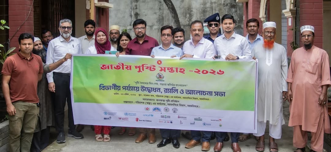পুষ্টি বৈষম্যের দিন শেষ, গড়বো স্বনির্ভর বাংলাদেশ,এই প্রতিপাদ্যকে সামনে রেখে ময়মনসিংহে জাতীয় পুষ্টি সপ্তাহ-২০২৬ এর বিভাগীয় পর্যায়ের উদ্বোধন, বর্ণাঢ্য র্যালি ও আলোচনা সভা অনুষ্ঠিত হয়েছে।