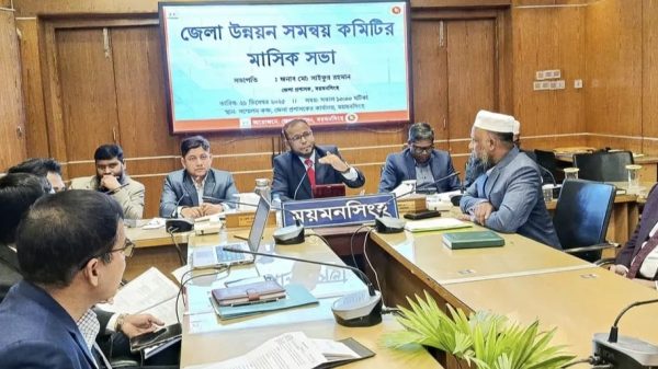 ময়মনসিংহে জেলা মাসিক উন্নয়ন সমন্বয় কমিটির সভা অনুষ্ঠিত মকবুল হোসেন, ময়মনসিংহ জেলা প্রতিনিধি ময়মনসিংহে জেলা মাসিক উন্নয়ন সমন্বয় কমিটির সভা অনুষ্ঠিত হয়েছে। আজ ২১ ডিসেম্বর রবিবার ময়মনসিংহ জেলা