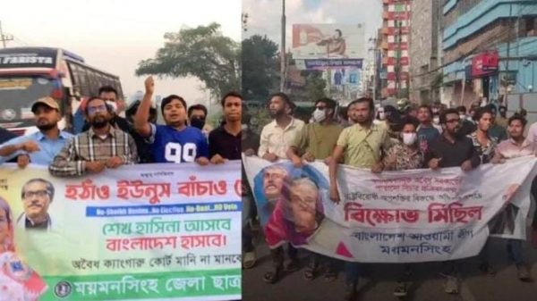 ময়মনসিংহে নিষিদ্ধ সংগঠন ছাত্রলীগের ঝটিকা মিছিল আবুল কালাম আজাদ, ময়মনসিংহ জেলা প্রতিনিধি: ময়মনসিংহ নগরীতে নিষিদ্ধ ঘোষিত সংগঠন বাংলাদেশ ছাত্রলীগের একটি ঝটিকা মিছিল অনুষ্ঠিত হয়েছে। সোমবার (১০ নভেম্বর ২০২৫)